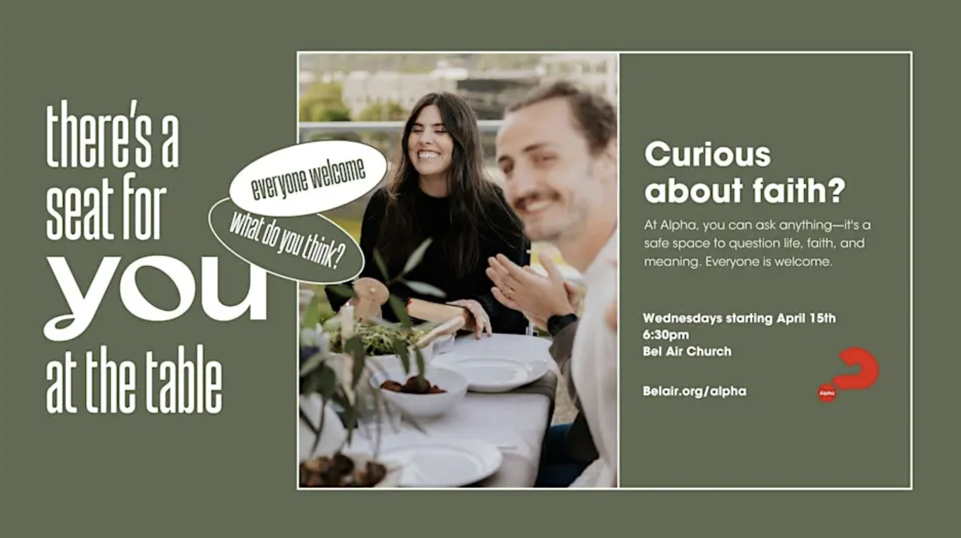 To get started, simply sign up at belair.org/alpha or come as you are on the first night. Once you register, you’ll receive a quick confirmation with everything you need to know. Bring a friend, bring your questions, and take a step toward discovering more together.