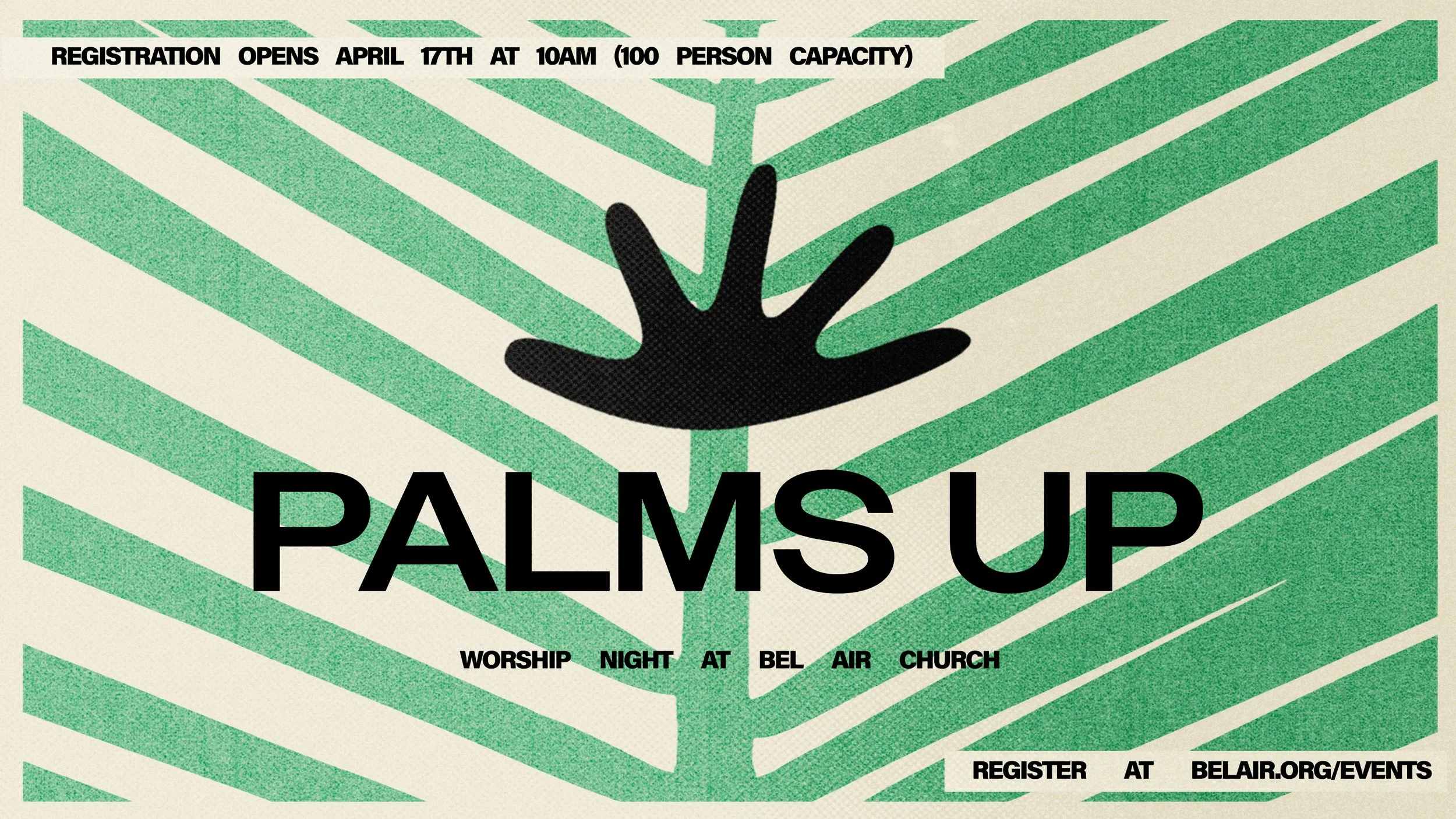 Palms Up is about living with open hands, open to God, and open to people. It’s a simple posture that shapes how we worship, how we serve, how we pray, and how we live every day. Instead of holding tightly to control, we choose to trust, to receive what God gives, and to give it away freely. That’s what it looks like for us at Bel Air Church to follow Jesus every day, everywhere, with everyone—showing up available, generous, and ready to be part of what God is doing in the lives of others.